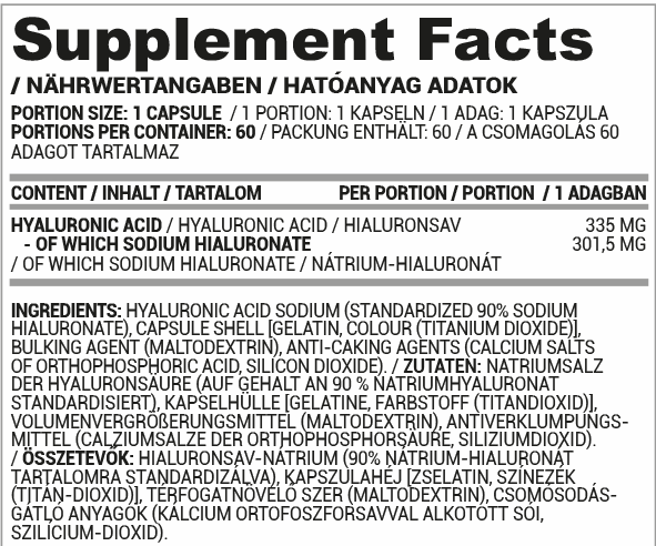 Adagonként 335 mg hialuronsavat tartalmazó kapszula.